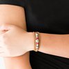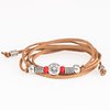 An array of red and silver beads are knotted in place along elongated suede cording for a wanderlust fashion. To secure bracelet, tie ends in place around the wrist at desired length.