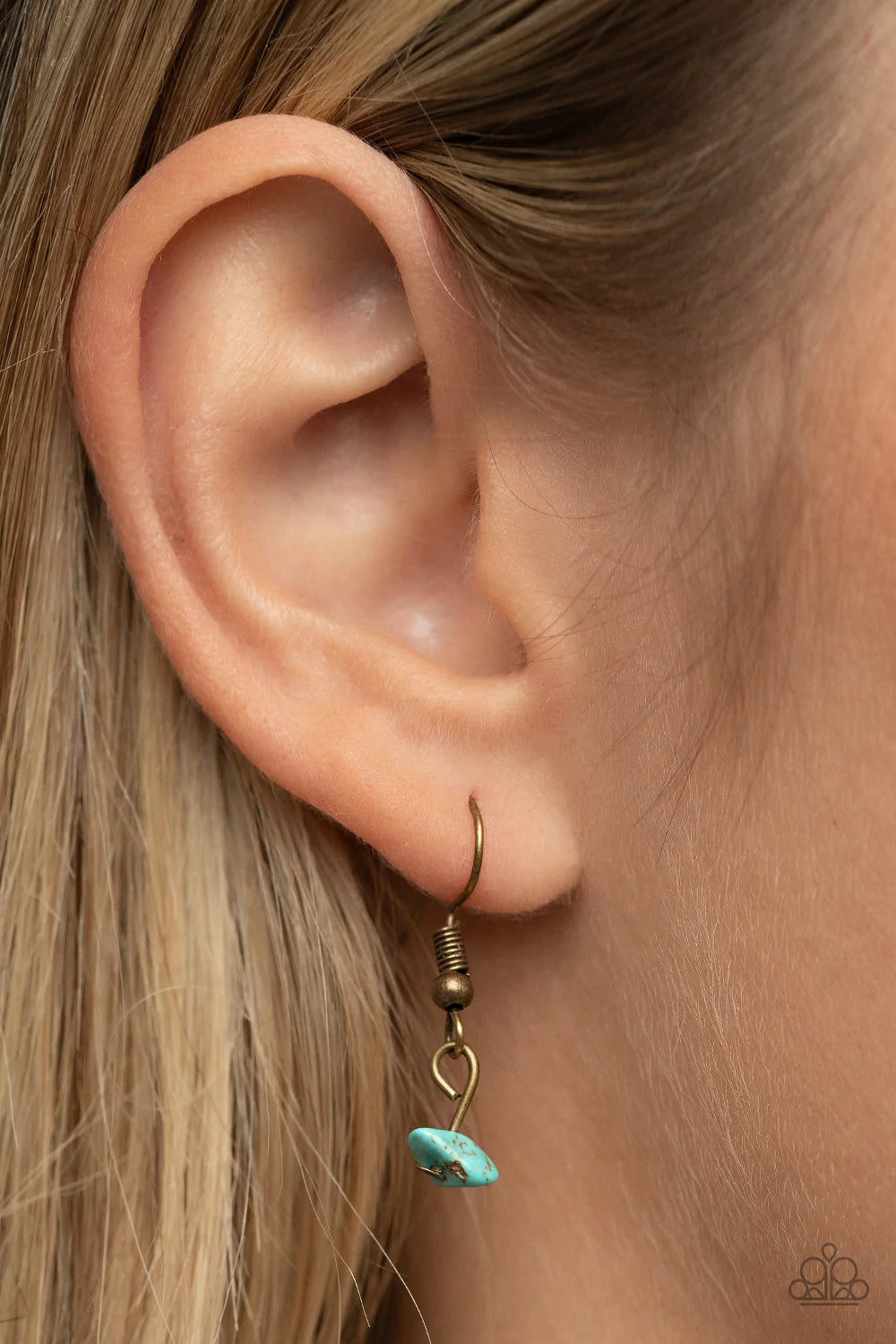 Infused with a multicolored collection of natural stone beads and pebbles, stacks of textured brass charms and mismatched wooden beads create earthy tassels at the bottom of a brass beaded teardrop frame. Enhanced with a shiny white threaded tassel, the whimsical fringe swings from the bottom of an extended brass chain for a seasonal finish. Features an adjustable clasp closure.
