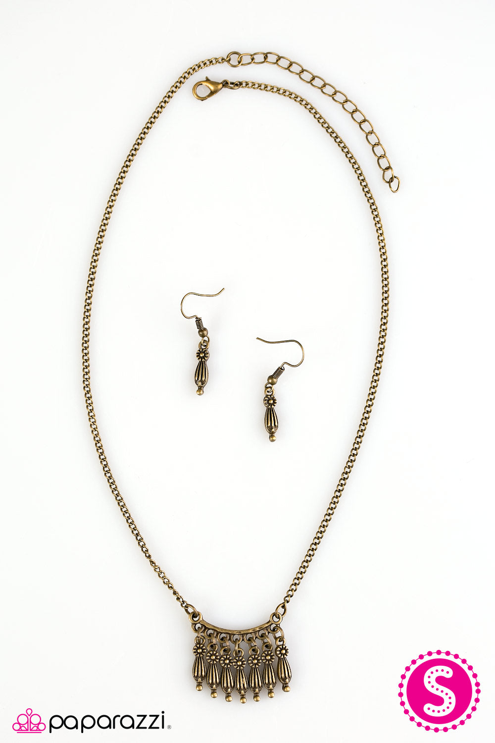 Decorative brass beading swings from the bottom of a bowing bar, creating an indigenous fringe. The dainty design falls just below the collar in a playful, yet casual display. Features an adjustable clasp closure.