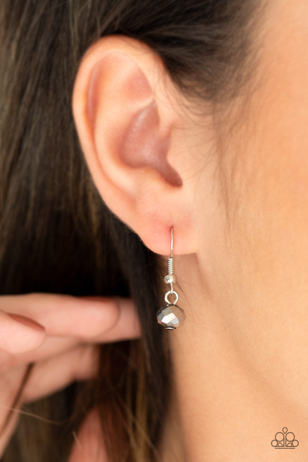 Hematite crystal-like beads trickle along three mismatched silver chains, creating shimmery layers across the chest. Features an adjustable clasp closure.