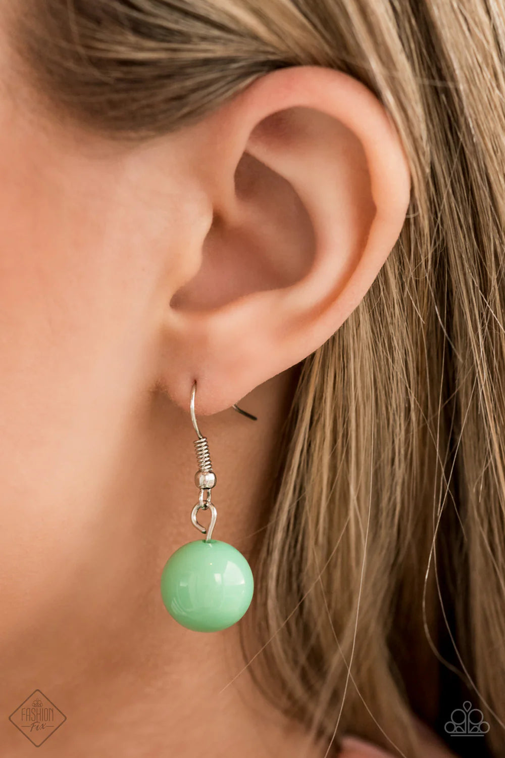A shimmery collection of hammered silver discs, green crystals, polished Biscay Green beads, and metal flecked crystal-like teardrops dangle from the bottom of a sliver chain, creating a whimsical fringe below the collar. Features an adjustable clasp closure.