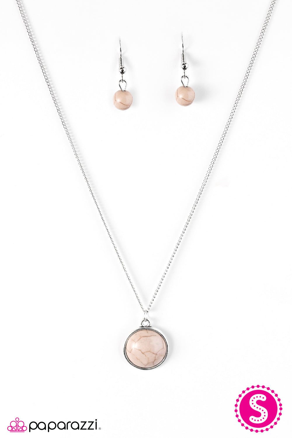 A smooth brown stone is pressed into a sleek silver frame, creating an earthy pendant below the collar. Features an adjustable clasp closure.