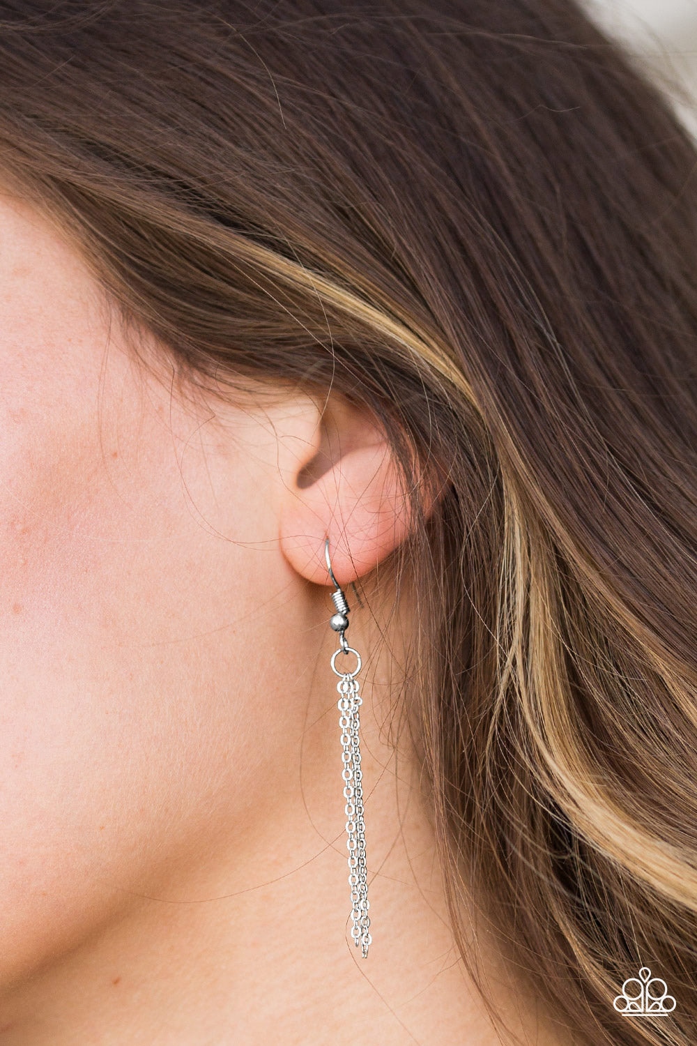 Encrusted in glittery white rhinestones, three dainty silver rings slide along a shimmery silver chain, creating a colorfully refined pendant below the collar. Features an adjustable clasp closure.