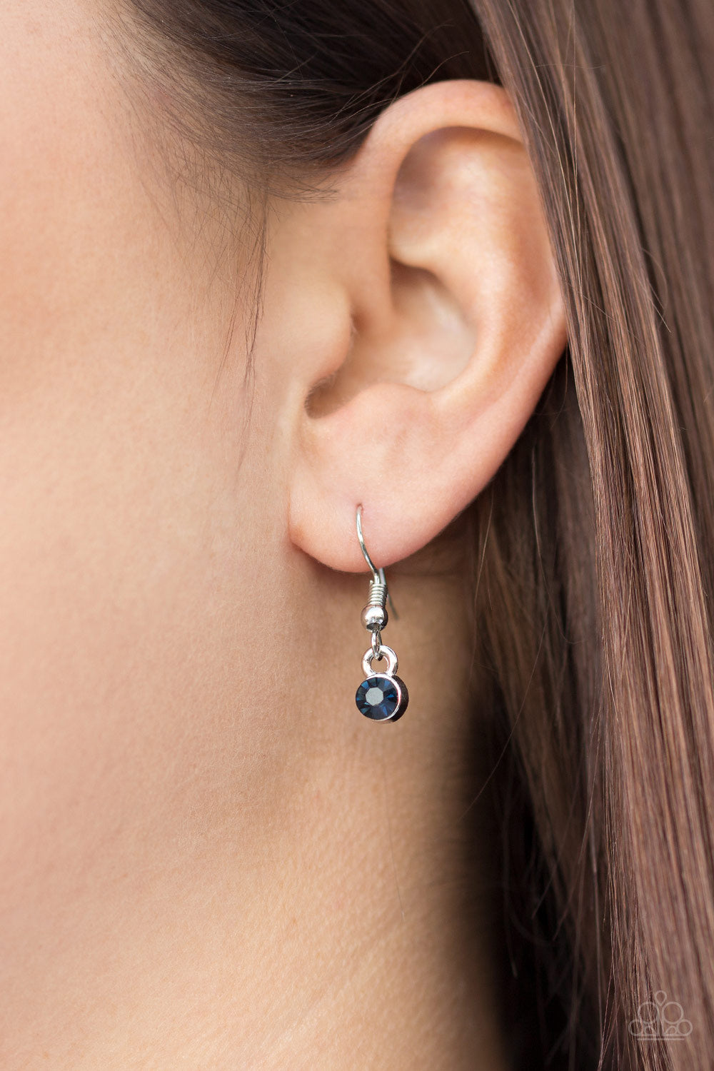 Varying in size, an array of glittery white and blue rhinestones are encrusted along a shimmery silver hoop. The sparkling pendant swings from the bottom of an elongated silver chain for a glamorous finish. Features an adjustable clasp closure.