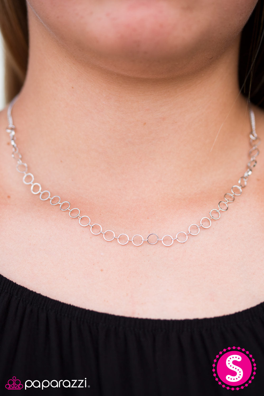 Dainty silver rings link below the collar, creating blinding hints of shimmer. Features an adjustable clasp closure.