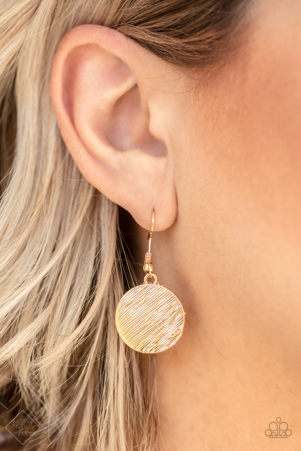 Featuring a subtle brush of texture shimmer, a binding collection of gold, shiny copper, and silver discs link below the collar, creating radiant rows. Features an adjustable clasp closure.
