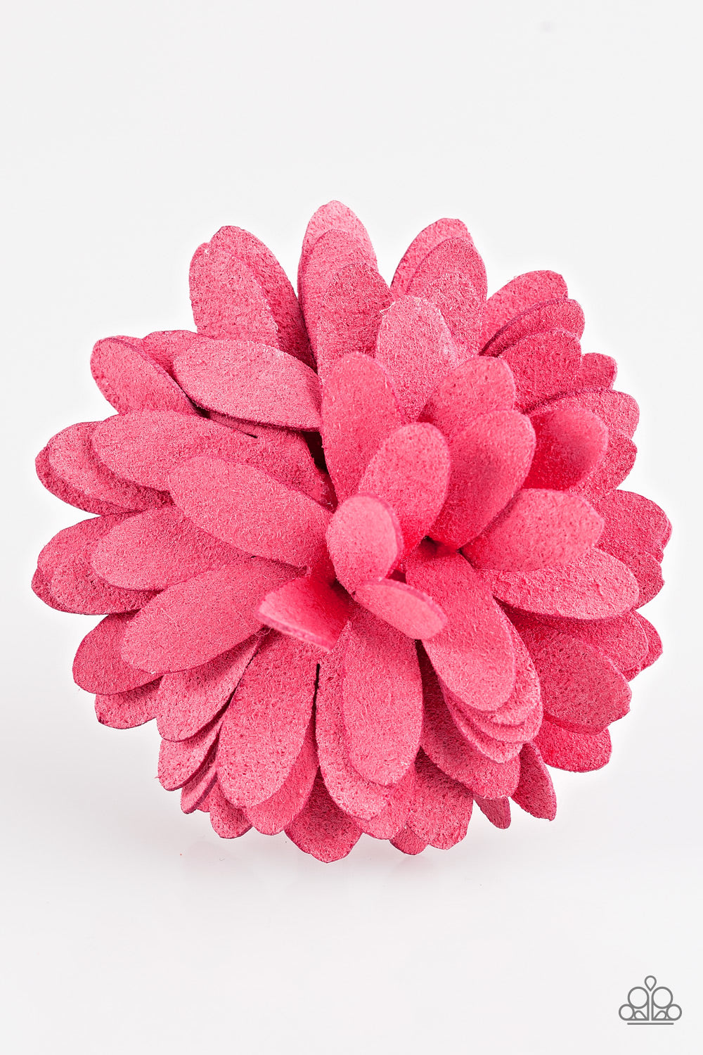 Pink suede petals gather into a billowy flower for a seasonal look. Features a standard hair clip on the back.