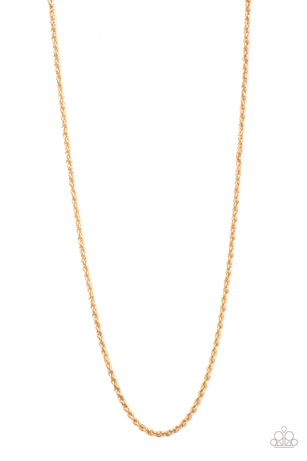 Featuring a high-sheen finish, a glistening strand of gold rope chain drapes across the chest for a casual shine. Features an adjustable clasp closure.