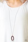Brushed in a fiery red finish, a bubbly silver teardrop swings from the bottom of an elongated silver chain for a tribal inspired look. Features an adjustable clasp closure.