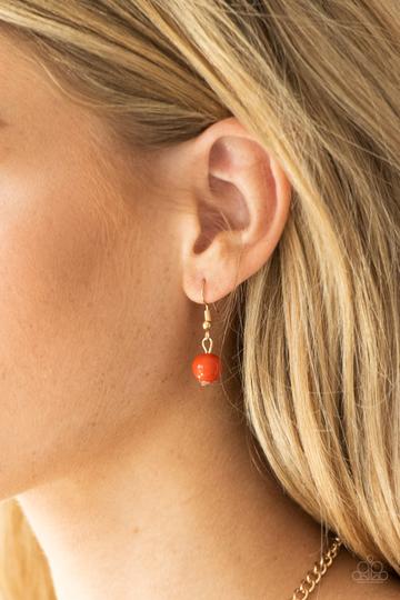 Varying in shape, glassy and polished orange beads swing from the bottom of interlocking gold chains. Crystal-like teardrops are sprinkled along the colorful beading, creating a flirtatious fringe below the collar. Features an adjustable clasp closure.